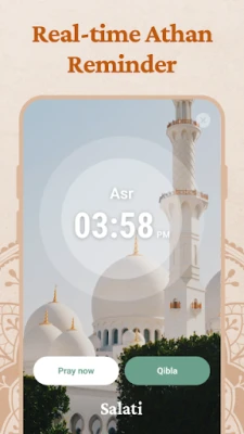 سلاۃ کی بنیادی خصوصیات میں سے ایک اس کا استعمال میں آسان قبلہ کمپاس ہے، جو آپ کو دنیا کے کسی بھی کونے سے مکہ مکرمہ کی جانب مقدس سمت کی درست نشاندہی کرتا ہے۔ ابتدائی سیٹنگ کے بعد یہ آف لائن بھی کام کرتا ہے اور آپ کے گھر، کام کی جگہ اور دیگر پسندیدہ مقامات کے لیے متعدد لوکیشنز کو محفوظ کرنے کی سہولت فراہم کرتا ہے۔ نماز کے اوقات کی درستگی کے لیے، سلاۃ آپ کے حقیقی وقت کے مقام کی بنیاد پر خودکار شیڈول ترتیب دیتا ہے، یا آپ دستی طور پر دنیا میں کوئی بھی مقام منتخب کر سکتے ہیں۔ یہ تمام معیاری اسلامی حساب کے طریقوں کی حمایت کرتا ہے تاکہ آپ کی سہولت کو یقینی بنایا جا سکے۔ بروقت اذان کی اطلاعات اور فل سکرین الارم کے ساتھ، آپ سلاۃ کی بدولت کبھی بھی اپنی نماز سے محروم نہیں ہوں گے۔