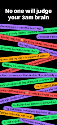 لاکھوں افراد TalkLife کا روزانہ انتخاب کرتے ہیں تاکہ وہ ایک دوسرے کے ساتھ اپنے تجربات بانٹ سکیں، ہمدردی سے ایک دوسرے کی بات سن سکیں، اور باہمی تعاون فراہم کر سکیں۔ چاہے آپ روزمرہ کے چیلنجز کا سامنا کر رہے ہوں، چھوٹی چھوٹی کامیابیوں کا جشن منا رہے ہوں، یا محض کسی سے بات کرنا چاہتے ہوں، آپ کو یہاں ایک غیر جانبدار اور خوش آئند ماحول ملے گا۔ یہاں کوئی فیصلہ نہیں سنایا جاتا، بس حقیقی ہمدردی کے ساتھ بات چیت کی جاتی ہے تاکہ آپ کو یہ احساس نہ ہو کہ آپ تنہا ہیں۔ دنیا بھر سے ہم خیال افراد کے ساتھ جڑ کر نئی دوستیاں بنائیں۔