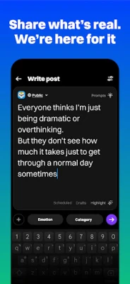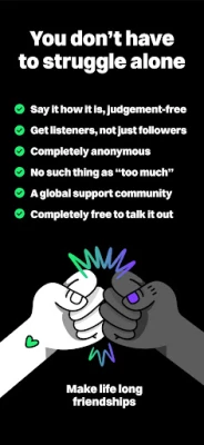 TalkLife آپ کو اپنی بات کہنے کے کئی طریقے پیش کرتا ہے۔ آپ نجی پیغامات کے ذریعے بات چیت کر سکتے ہیں، گروپ چیٹس میں شامل ہو سکتے ہیں، یا عوامی پوسٹس کے ذریعے اپنے خیالات کا اظہار کر سکتے ہیں۔ ہر طرح سے جڑنے کی آزادی یہاں موجود ہے۔ یہ پلیٹ فارم آپ کو زندگی کی کامیابیوں کو بانٹنے اور مشکل لمحات میں سہارا پانے کا موقع دیتا ہے۔ TalkLife مکمل طور پر مفت دستیاب ہے، تاہم، اگر آپ پلیٹ فارم کی حمایت کرنا چاہیں تو 'Hero Membership' کی رکنیت حاصل کر کے خصوصی خصوصیات جیسے کہ پروفائل بوسٹ اور نمایاں پوسٹس تک رسائی حاصل کر سکتے ہیں۔