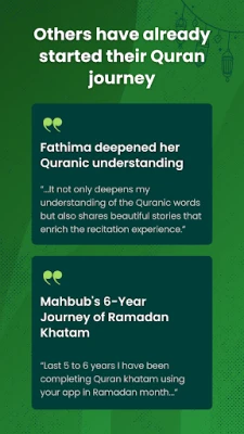 آپ اپنے مطالعے کو مزید ذاتی بنا سکتے ہیں: آیات کو اپنی پسندیدہ کلیکشن میں بک مارک کریں، آخری پڑھی ہوئی آیت کو پن کریں، اور خودکار "آخری پڑھا گیا" فیچر کے ذریعے جہاں سے چھوڑا وہیں سے دوبارہ آغاز کریں۔ ہر آیت پر نوٹس لے کر اپنے خیالات قلم بند کریں، اور اپنی لائبریری کو متعدد آلات پر مطابقت پذیر (Sync) بنائیں یا دوسروں کے ساتھ شیئر کریں۔ طاقتور سرچ انجن کسی بھی سورہ یا آیت کو تیزی سے تلاش کرنے میں معاون ہے، جبکہ موضوعاتی مطالعہ کے ذریعے ایک خاص موضوع سے متعلق تمام آیات کو یکجا پڑھا جا سکتا ہے۔ 80 سے زائد قراء کرام کی آواز میں قرآنی تلاوت کے ساتھ 10 سے زیادہ زبانوں میں آڈیو ترجمہ بھی سنا جا سکتا ہے۔ قرآن حفظ کرنے کے لیے ورسز کو دہرانے اور گروپ پلے بیک جیسے بہترین آڈیو آپشنز بھی فراہم کیے گئے ہیں۔ مزید براں، قرآن پلانر کے ذریعے ختم قرآن کی منصوبہ بندی کریں، روزانہ کے اہداف مقرر کریں، اپنی پڑھنے کی عادت کو ٹریک کریں اور مختلف کامیابیاں حاصل کریں۔