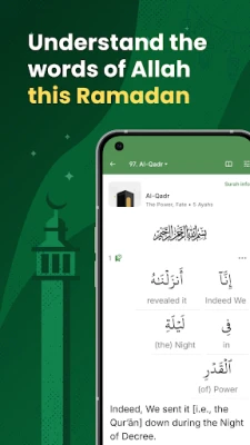 قرآن کے عمیق مطالعے کے لیے، یہ ایپ 65 سے زائد زبانوں میں 175 سے زیادہ تراجم اور تفاسیر فراہم کرتی ہے، جن میں اردو، ہندی، انگریزی اور دیگر زبانیں شامل ہیں۔ اس میں آٹھ مشہور عربی تفاسیر جیسے تفسیر ابن کثیر اور تفسیر طبری، نیز اعراب، لفظی معنی اور اسباب نزول کی تفصیلات بھی موجود ہیں۔ ہر سورہ کا جامع خلاصہ اور اس کی فضیلت جاننا بھی ممکن ہے۔ لفظ بہ لفظ ترجمے 15 سے زیادہ زبانوں میں دستیاب ہیں، جو آپ کو ہر لفظ کی جڑ، گرامر اور مورفولوجی کو سمجھنے میں مدد دیتے، اور قرآنی عربی سیکھنے کے عمل کو آسان بناتے ہیں۔ مصحف موڈ کے ذریعے مدنی، انڈوپاک اور دیگر مشہور خطاطی میں قرآنی نسخے کو پڑھنے کا وہی تجربہ حاصل ہوتا ہے جو ایک حقیقی مصحف سے حاصل ہوتا ہے۔